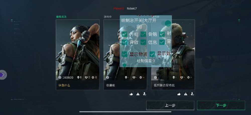 三角洲HabHak辅助功能简介:1.透视功能:方框骨骼 敌方名字 血条显示 手持武器2.透视功能:人机分辨 护甲距离 危险预警 透视距离3.物品分类:显示物品 显示陷阱 过滤物品 过滤品质4.物品分类:显示尸包 尸···...